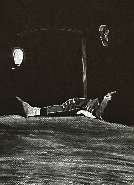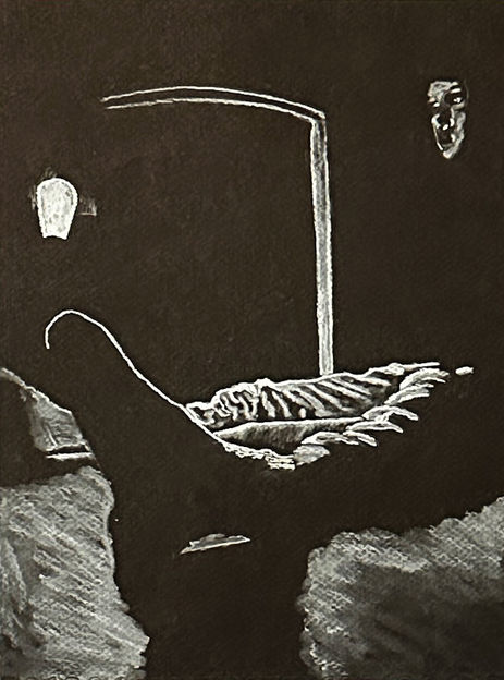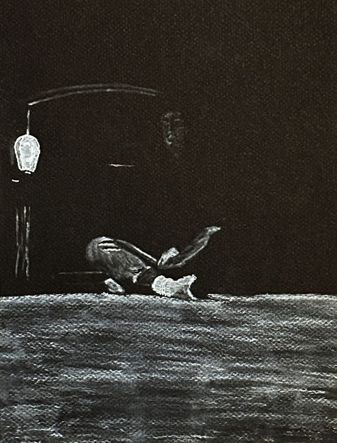 My sustained investigation examines the role of light, specifically how a single Edison bulb illuminating a dark space can relate to my own life, illustrating how I seek for calm in the bustle of my days. Furthermore, how does the proximity of my figure to the light, and the progressive removal of color strengthen my narrative?